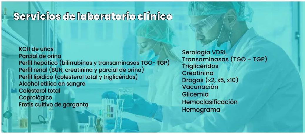 Pruebas complementarias: Optometría, visiometría, RX de Tórax y de columna, espirometria, audiometría clínica y tamiz, prueba sicosensométrica, electrocardiograma, laboratorios clínicos básicos y especializado.